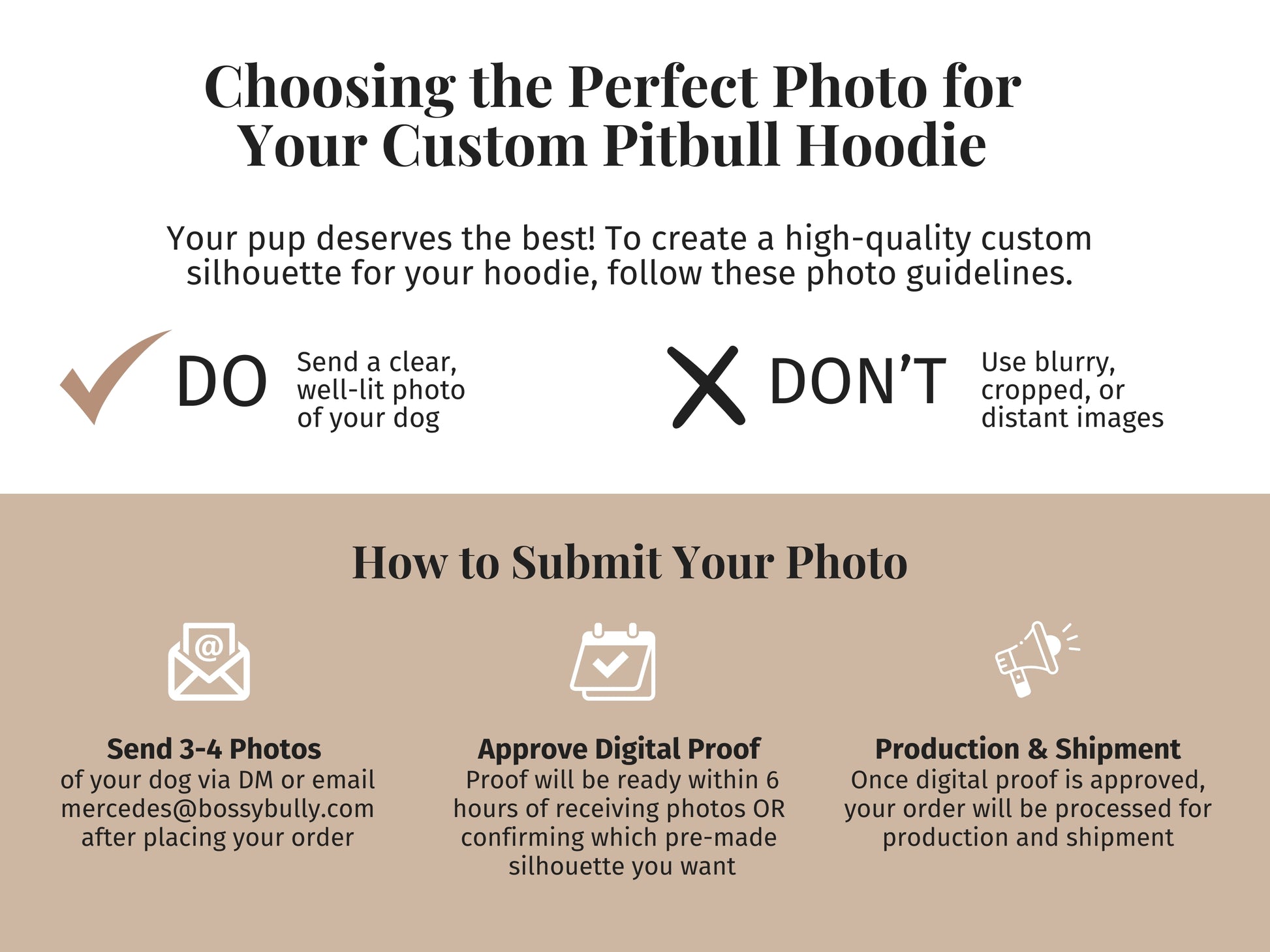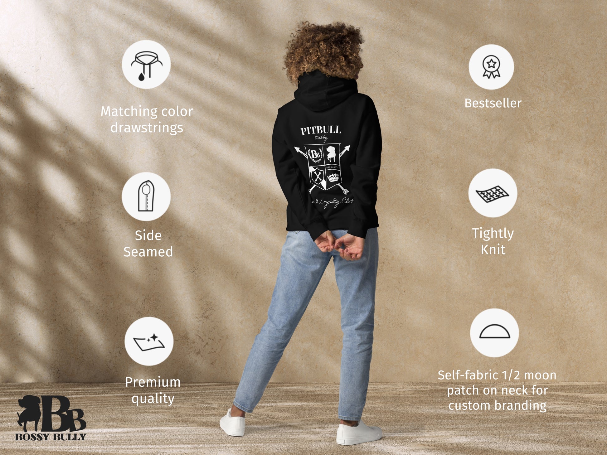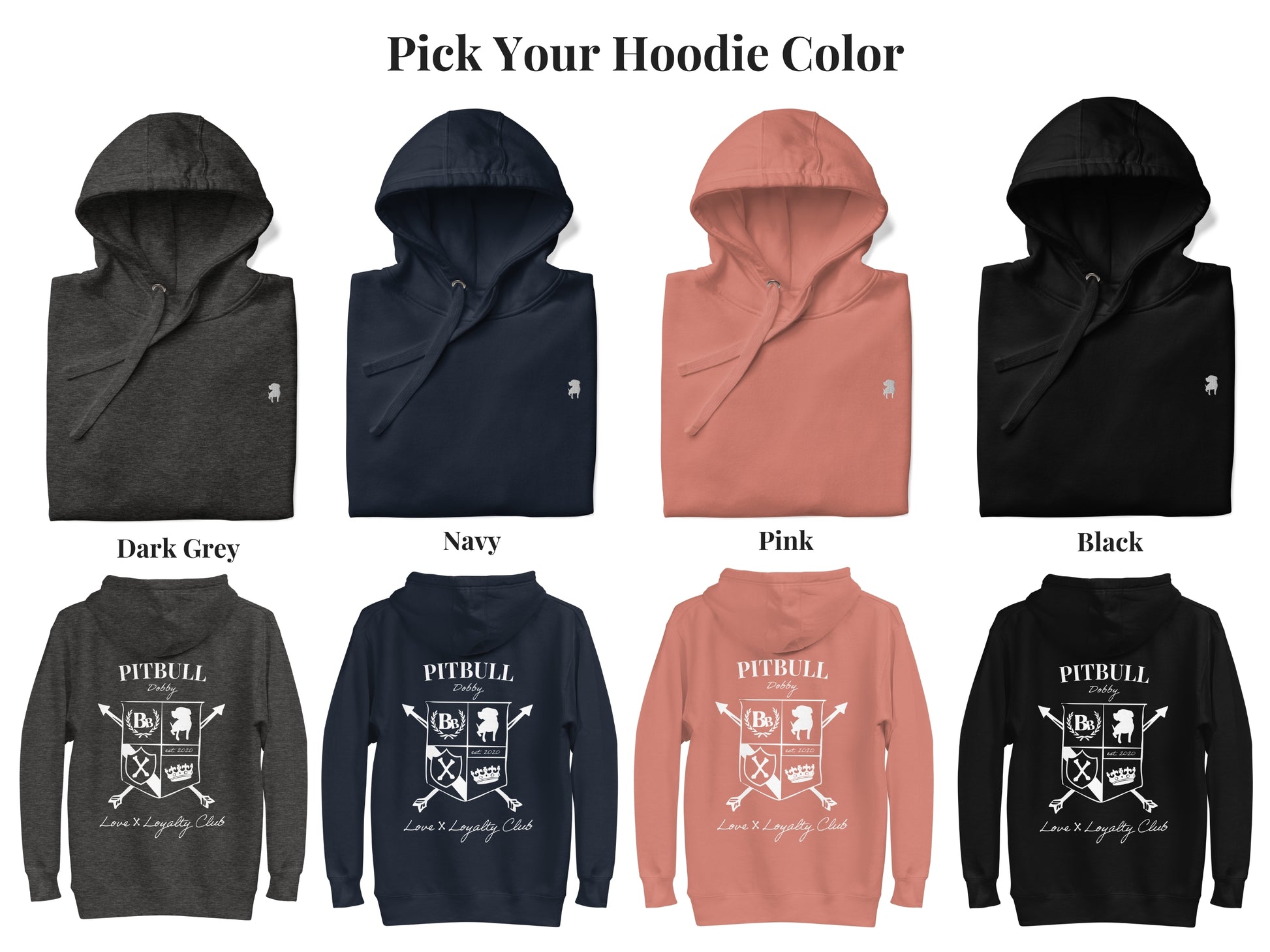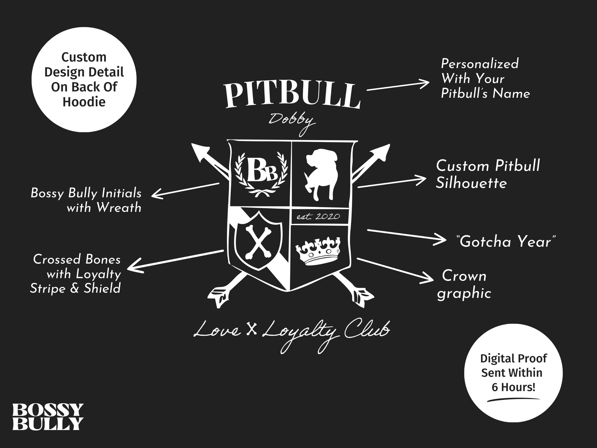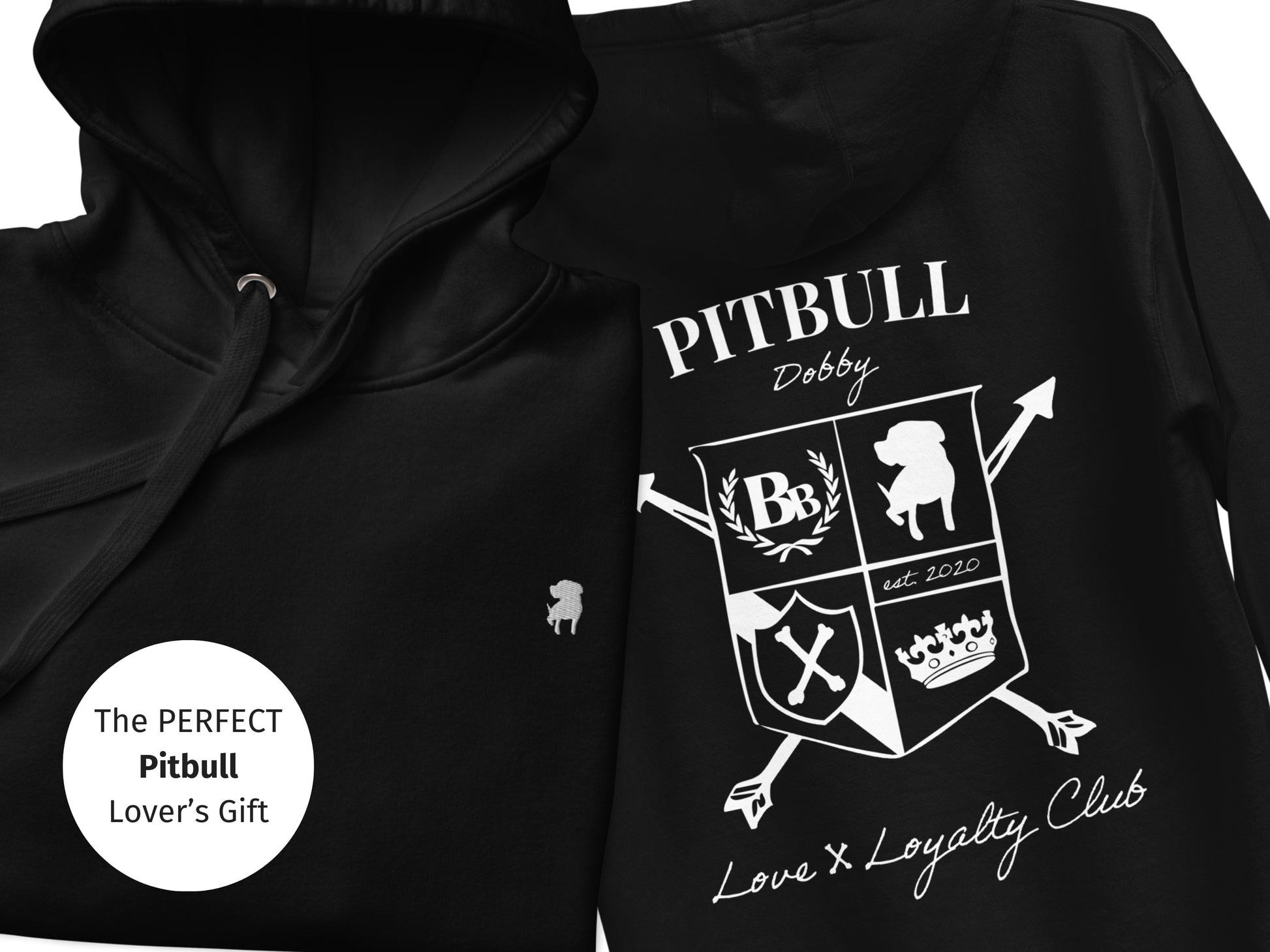 Celebrate your Pitbull in style with this exclusive Personalized Pitbull Hoodie from our Love & Loyalty Club Collection—perfect for dog moms, dog dads, Pitbull lovers, and bully breed advocates. Featuring a custom Pitbull silhouette, your dog’s name, and a personalized crest design, this unisex hoodie for dog owners is a bold, heartfelt tribute to the loyalty, strength, and personality of your pup. Whether you’re looking for a custom dog hoodie, a thoughtful gift for Pitbull owners, or breed-specific apparel that lets you rep your dog with pride, this hoodie is made for you.