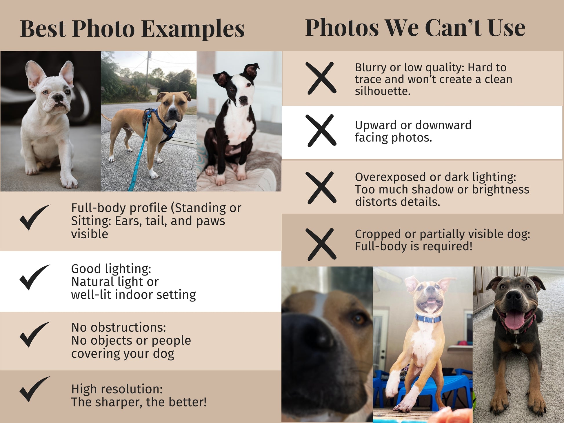- Personalized crest design (printed on back): includes dog’s name, silhouette, and “est. year”