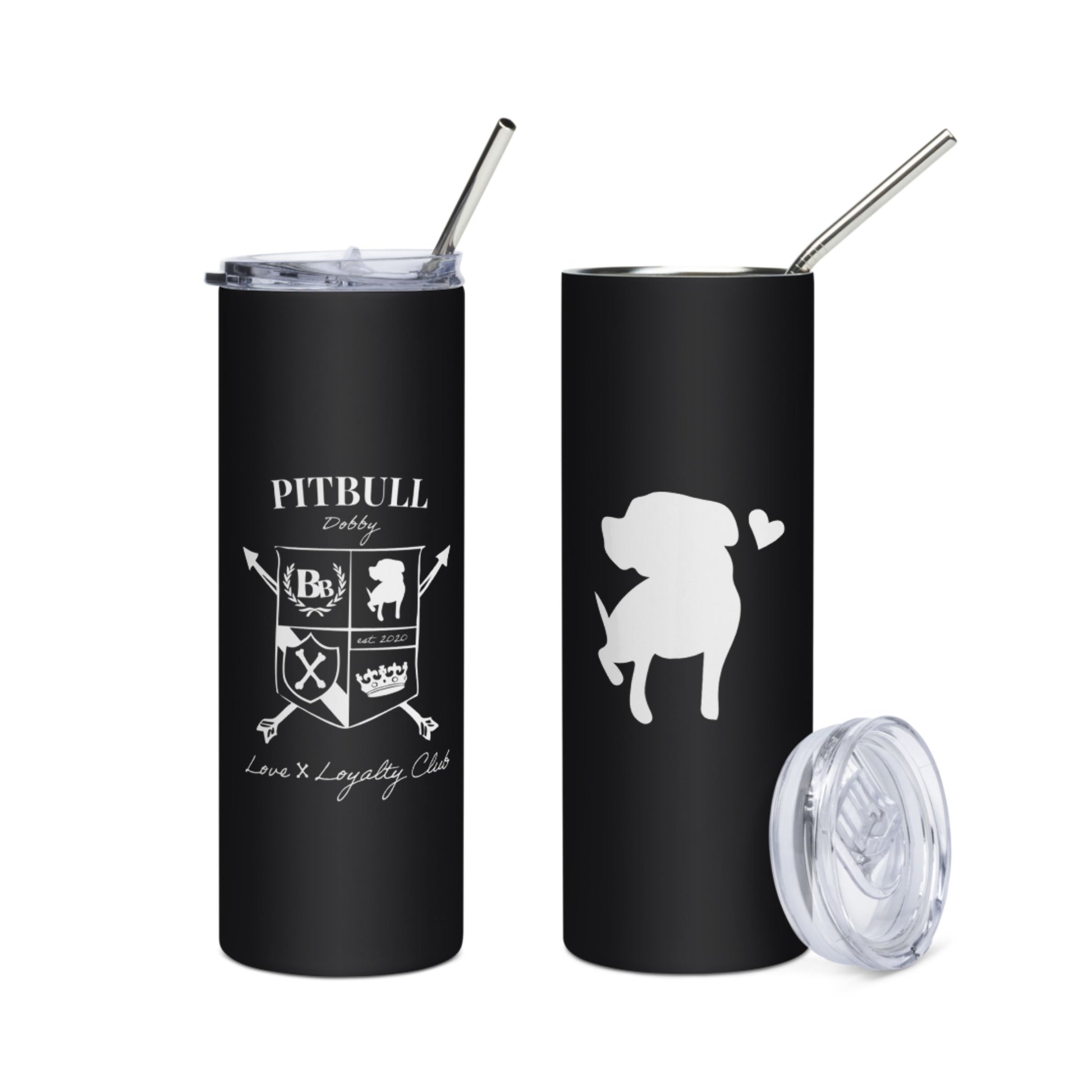 Celebrate your Pitbull with style and purpose in this sleek, personalized tumbler from our Love & Loyalty Club Collection. Crafted from high-grade stainless steel with a bold black finish and crisp white design, this tumbler features your pup’s silhouette on one side and a custom crest on the other—making it the perfect blend of function and tribute.