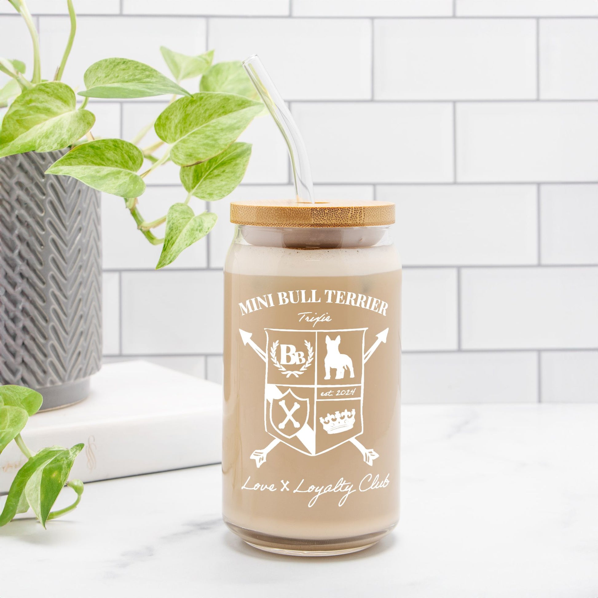 Mini Bull Terrier Glass Can 16oz