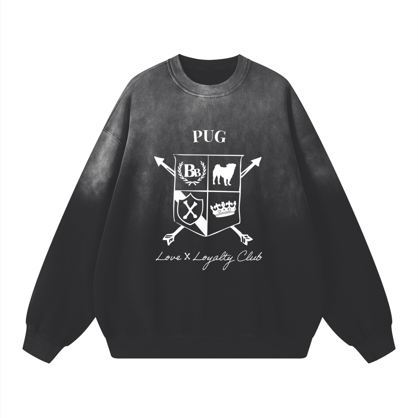 Celebrate the playful charm and loyal heart of the Pug with our Heritage Crest Heavyweight Sweatshirt — a relaxed unisex fit crafted from 100% pure cotton for premium comfort and timeless appeal. Featuring the bold Pug Heritage Crest printed front and center, each sweatshirt is hand-finished with a signature monkey-wash technique, giving it a soft, vintage-inspired texture and unique character. Designed for Pug lovers and bully breed enthusiasts, this premium heavyweight crewneck combines cozy streetwear comfort with the affectionate, expressive spirit that makes Pugs so unforgettable.