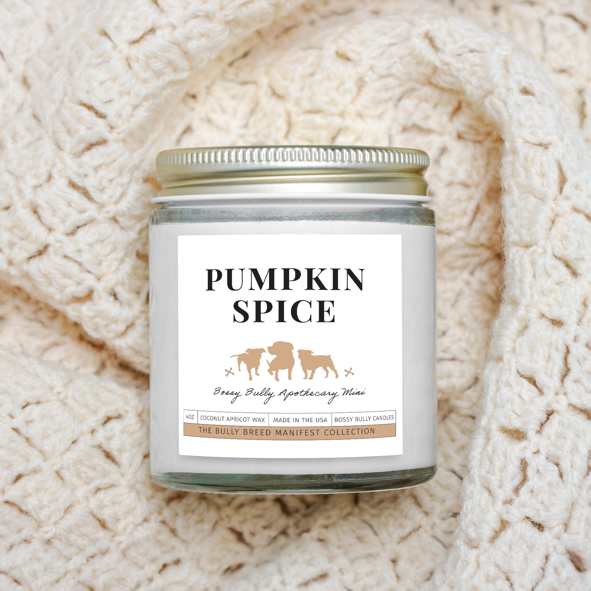 Immerse yourself in the cozy warmth of autumn with our Pumpkin Spice Candle — a 4oz clear jar hand-poured with clean, natural coconut apricot wax. This irresistible fragrance opens with clove, cinnamon, and nutmeg before blending into a creamy heart of pumpkin and buttercream. As it burns, sweet vanilla and smoky undertones create a soft, lingering finish that feels like home. Inspired by the warmth and loyalty of bully breeds, this candle is the perfect companion for crisp evenings and slow mornings.